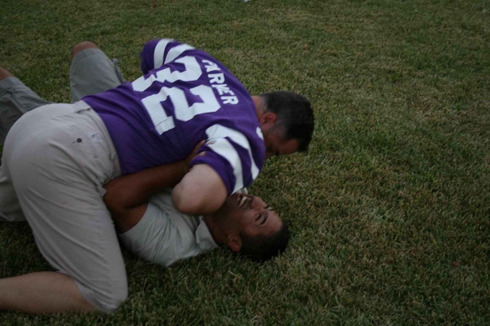 Pointing to Boris the Spider in our backyard. He was fed crickets on a daily basis.